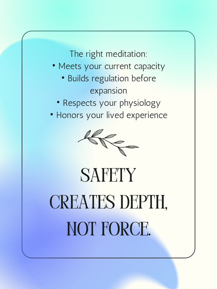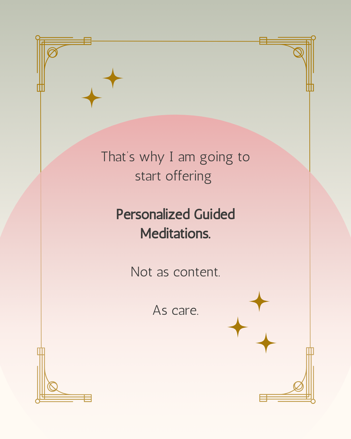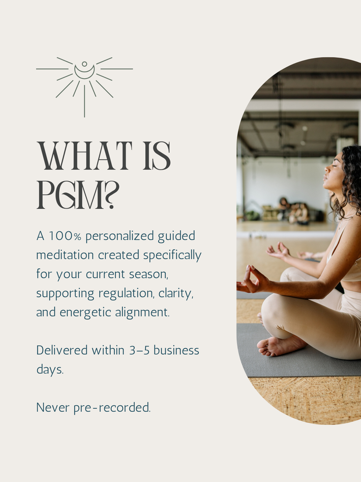 A Personalized Guided Meditation is a custom meditation created specifically for you. Rather than using a pre-recorded script, each meditation is thoughtfully crafted to support your individual needs, whether that involves calming the mind, processing emotions, or creating a sense of safety and grounding in the body.