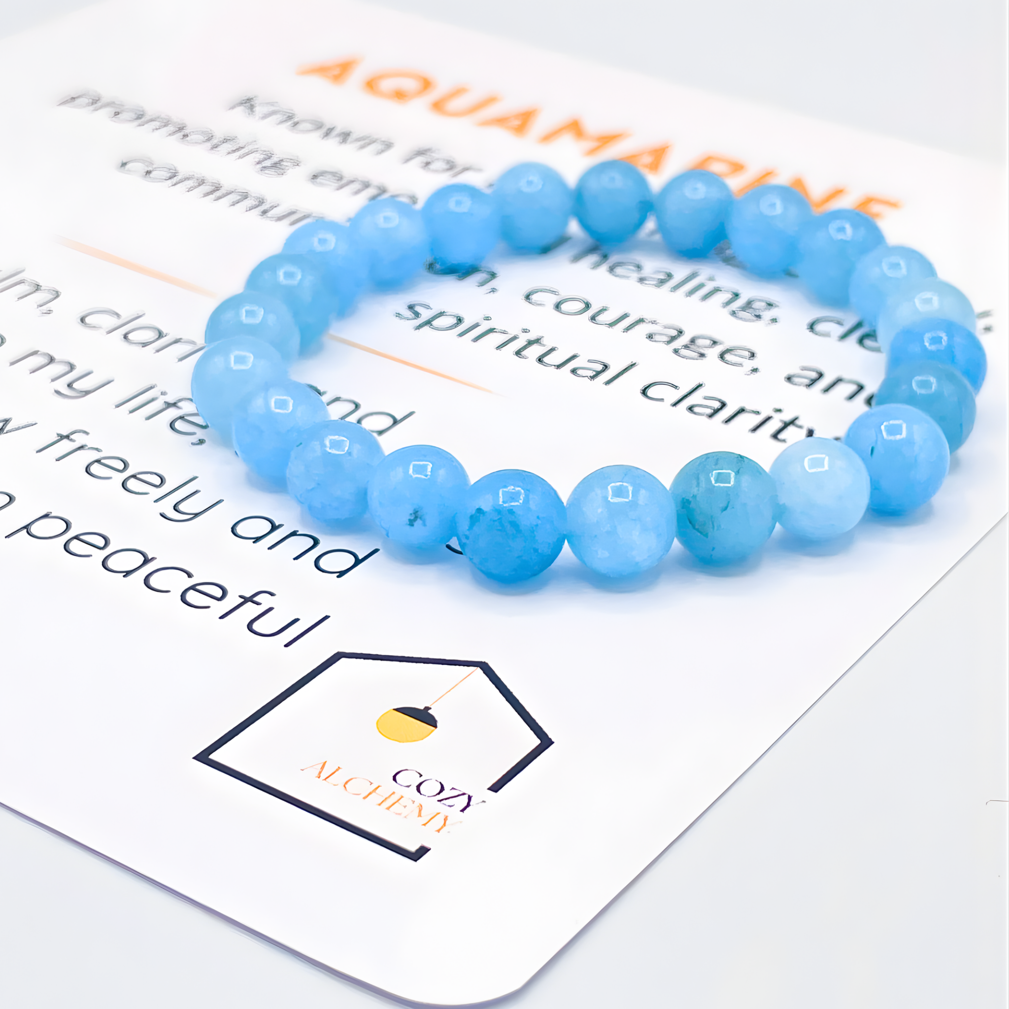 Step into the healing flow of Aquamarine with the Aqua Guardian Bead Bracelet, designed to support emotional clarity, mental peace, and effective communication. Known for its connection to the throat chakra, Aquamarine helps you speak your truth with confidence, while encouraging emotional release and soothing negative energy.