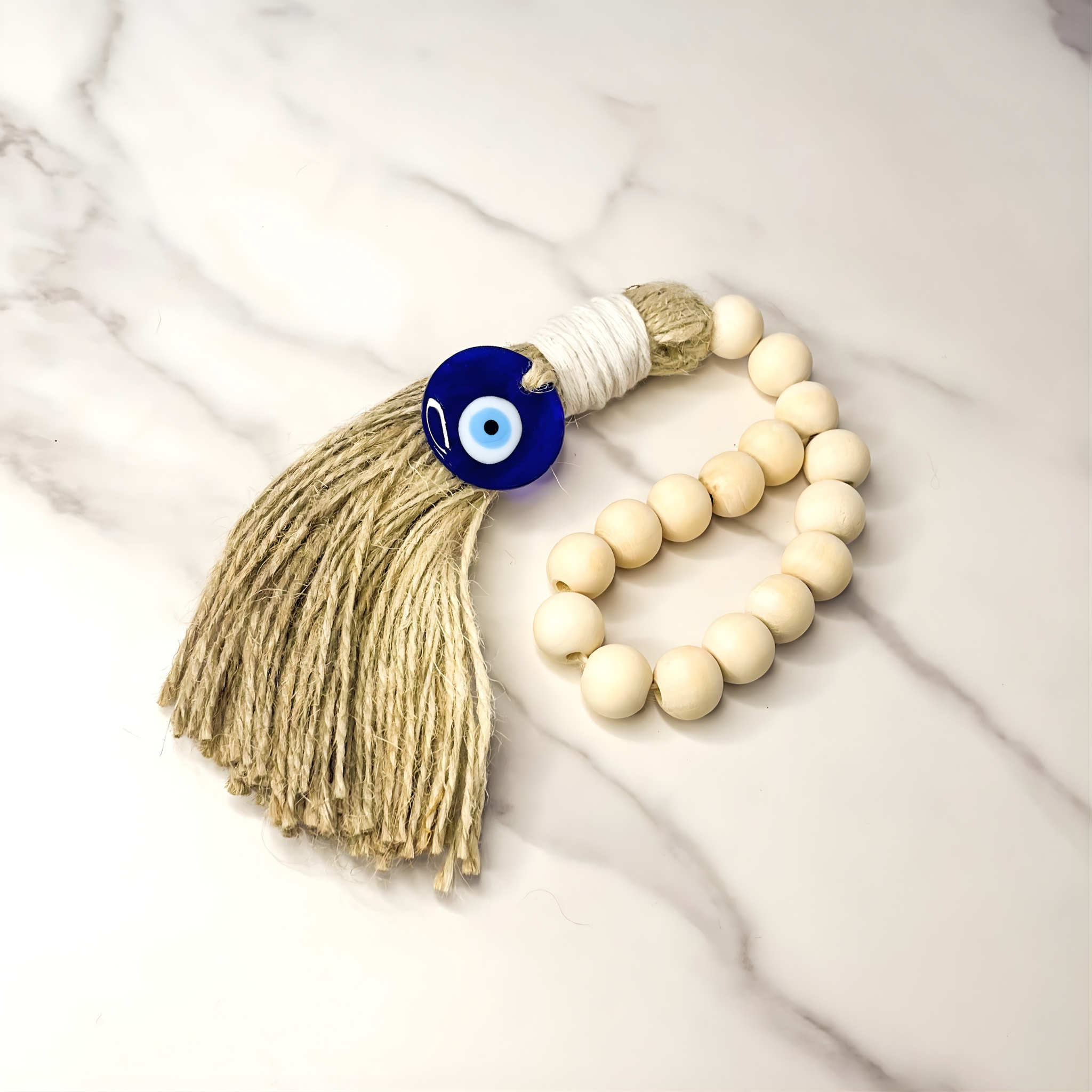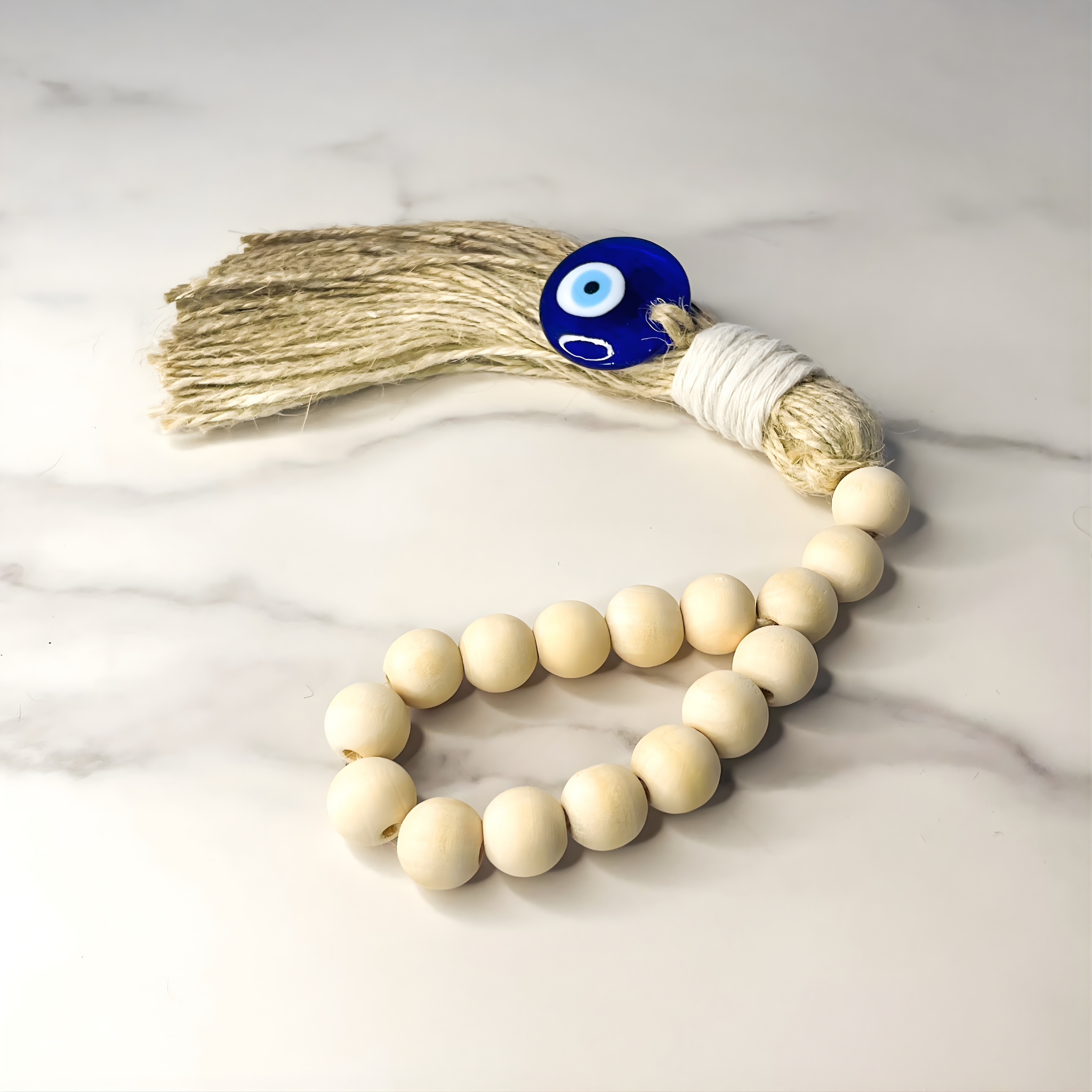 Infuse your home with warmth, protection, and positive energy through the Watchful Eye Blessing Beads. Handmade with natural wood, durable rope, and the iconic blue eye accent, each strand is infused with Reiki energy to strengthen its protective intention.