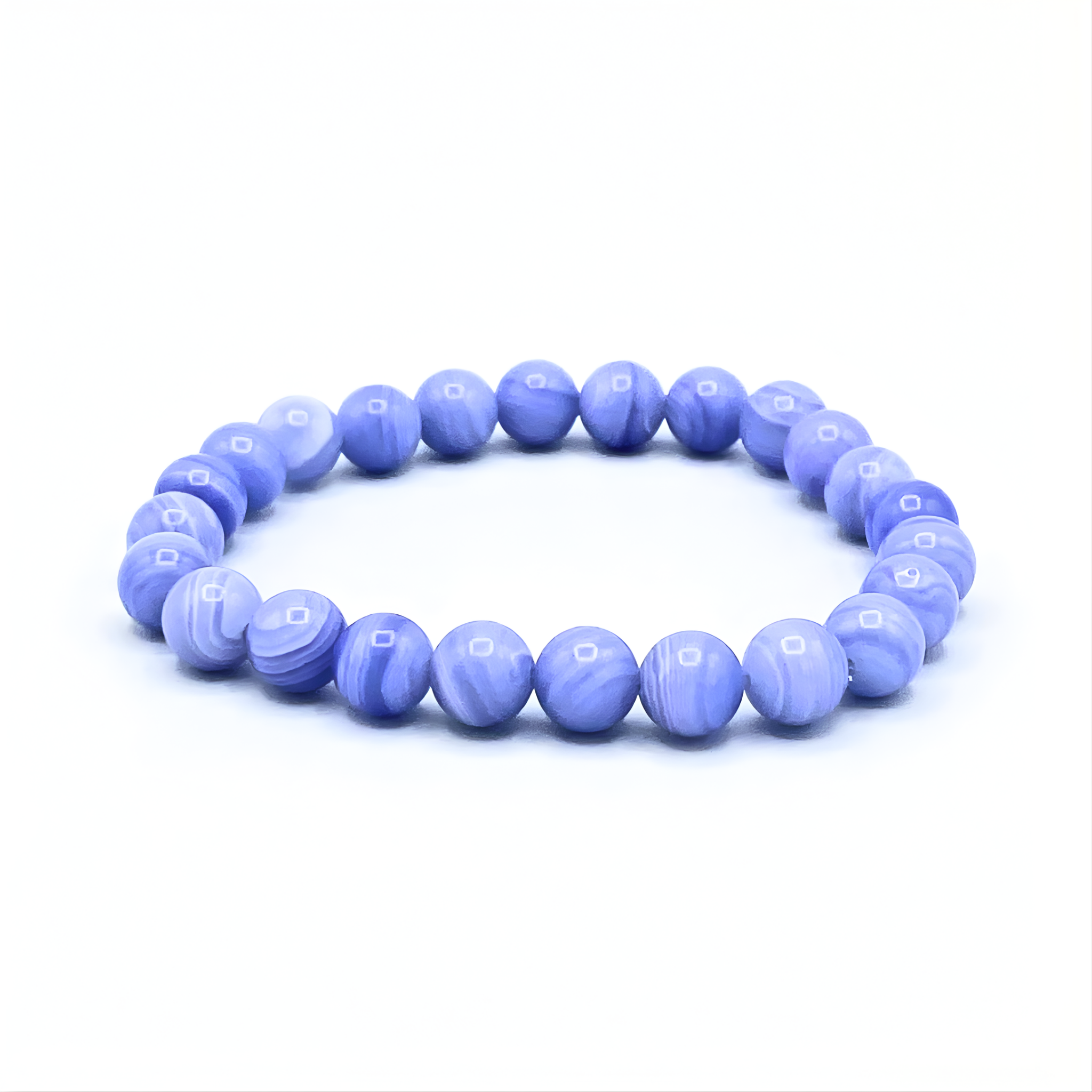 Let the calming beauty of The Whispering Sky Bead Bracelet inspire your sense of peace and clarity. Featuring the soft, dreamy hues of Blue Lace Agate, this bracelet symbolizes gentle communication, inner calm, and graceful self-expression.