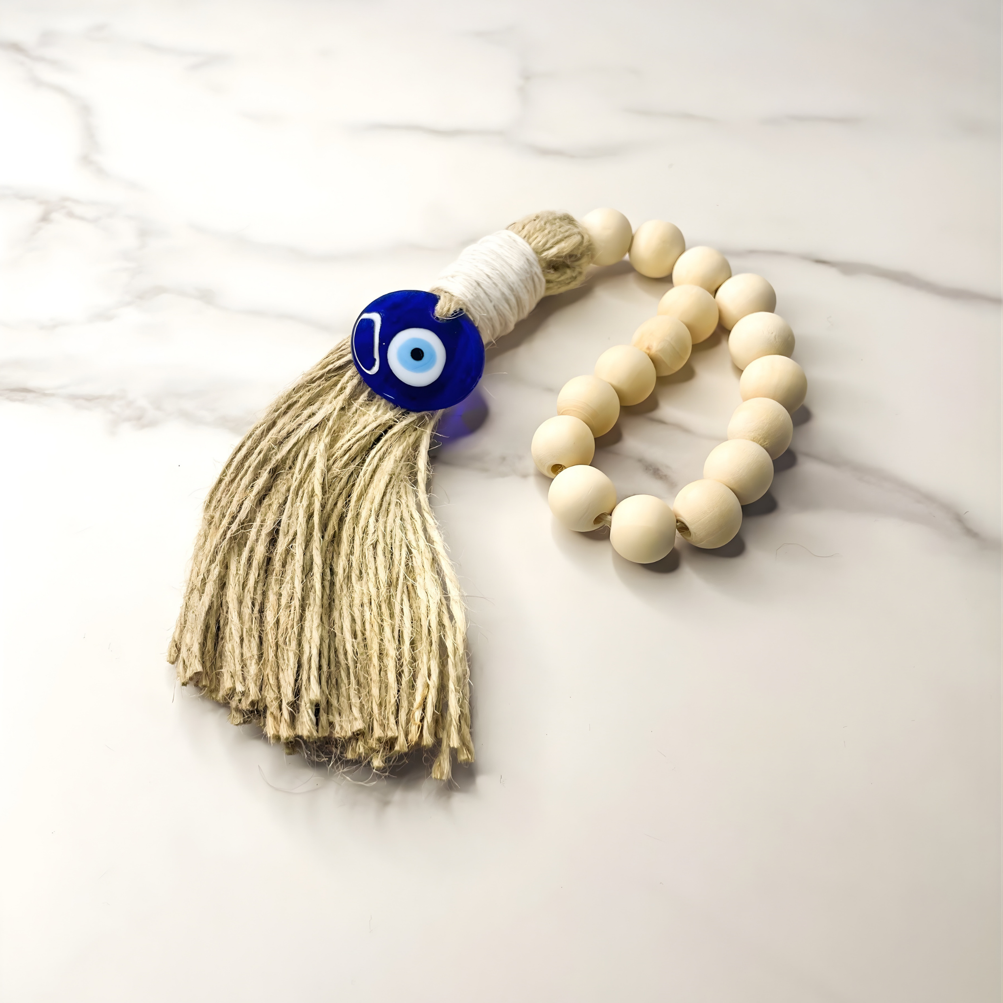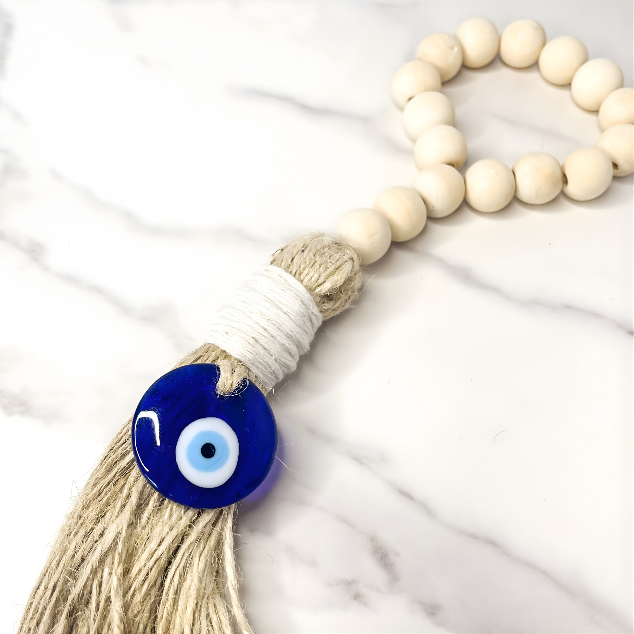 Infuse your home with warmth, protection, and positive energy through the Watchful Eye Blessing Beads. Handmade with natural wood, durable rope, and the iconic blue eye accent, each strand is infused with Reiki energy to strengthen its protective intention.