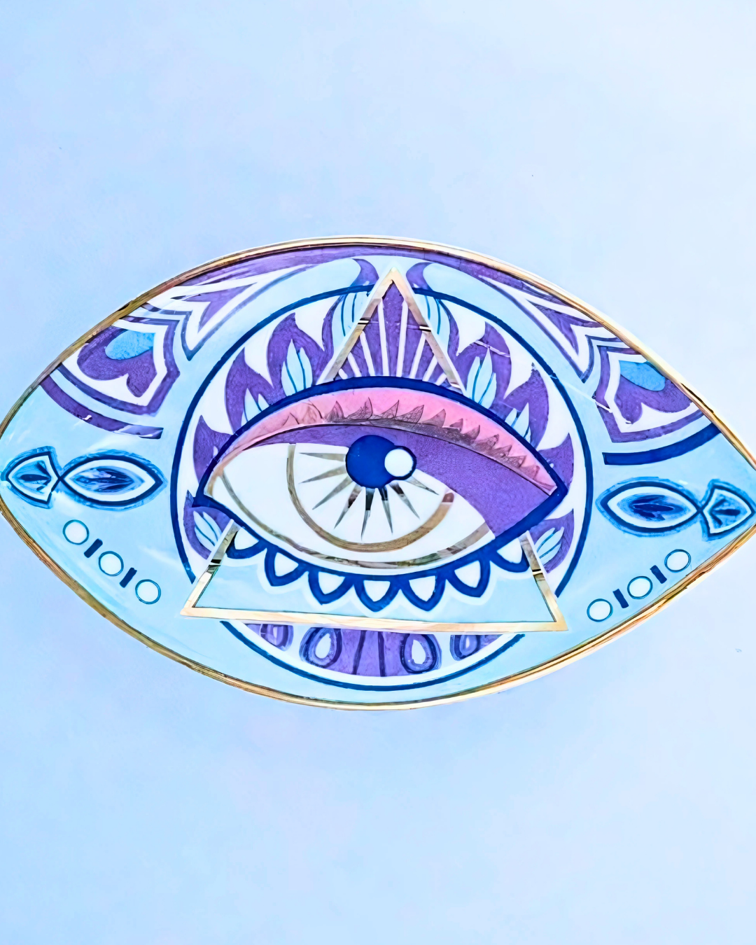 Bring serenity and intention into your home with the Blue Paradise Ring Dish. Beautifully crafted in a unique eye shape, this versatile dish is hand-painted with intricate detailing and thoughtfully infused with Reiki energy to promote harmony, balance, and positive vibes.