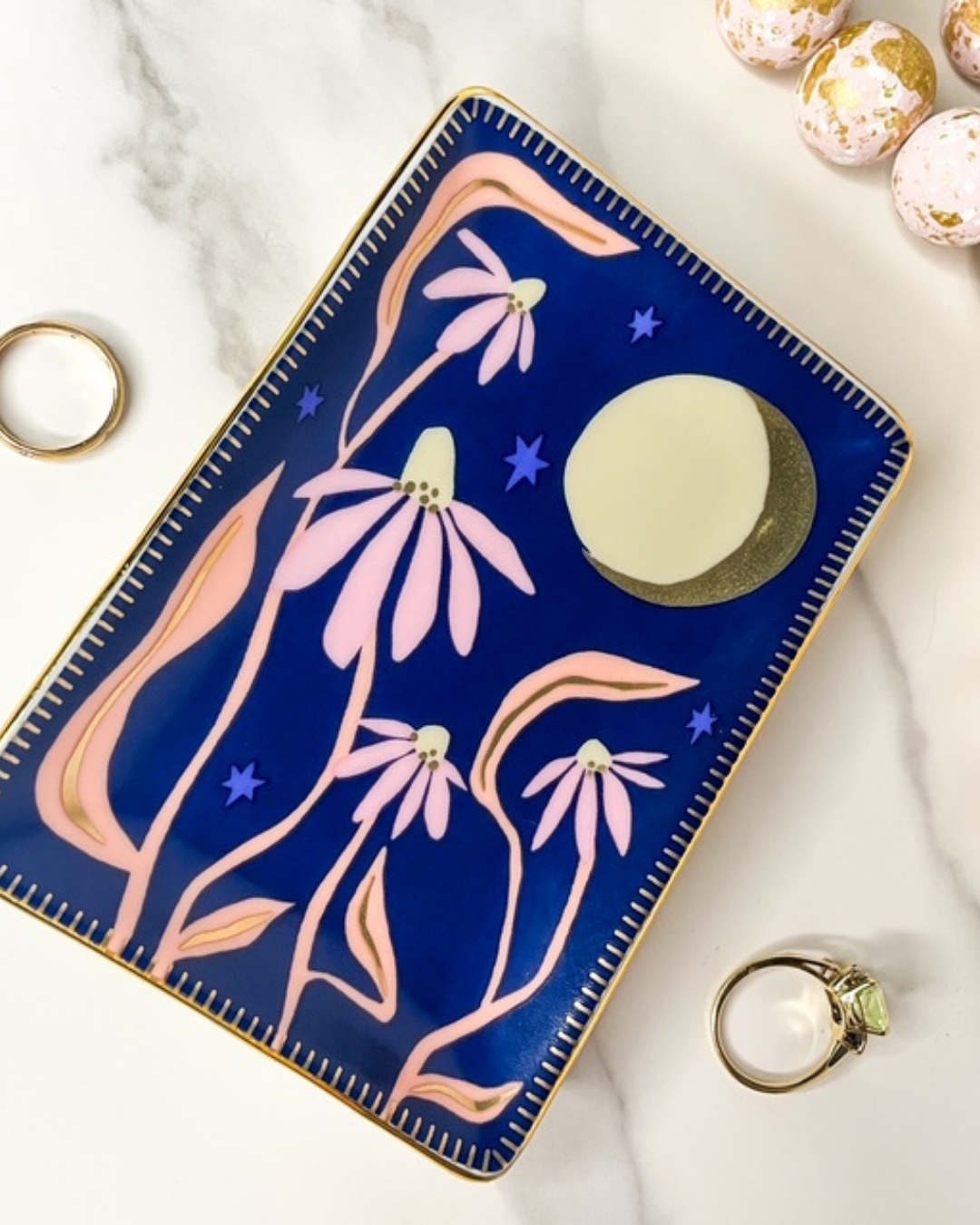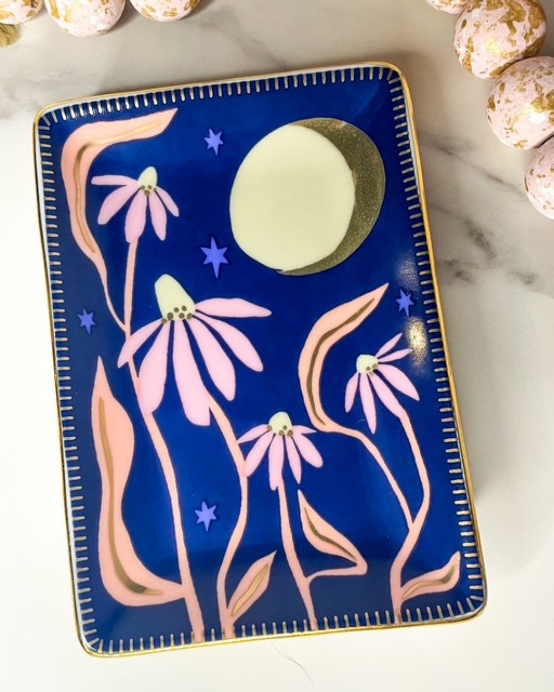 Add a touch of charm to your nightstand or dresser with the Moonlight in the Garden Ring Dish — a fan-favorite gift that’s as stylish as it is functional. This hand-painted ceramic dish is perfect for holding your rings, earrings, and little treasures, making it a beautiful jewelry dish, ring tray, or decorative accent for any space.