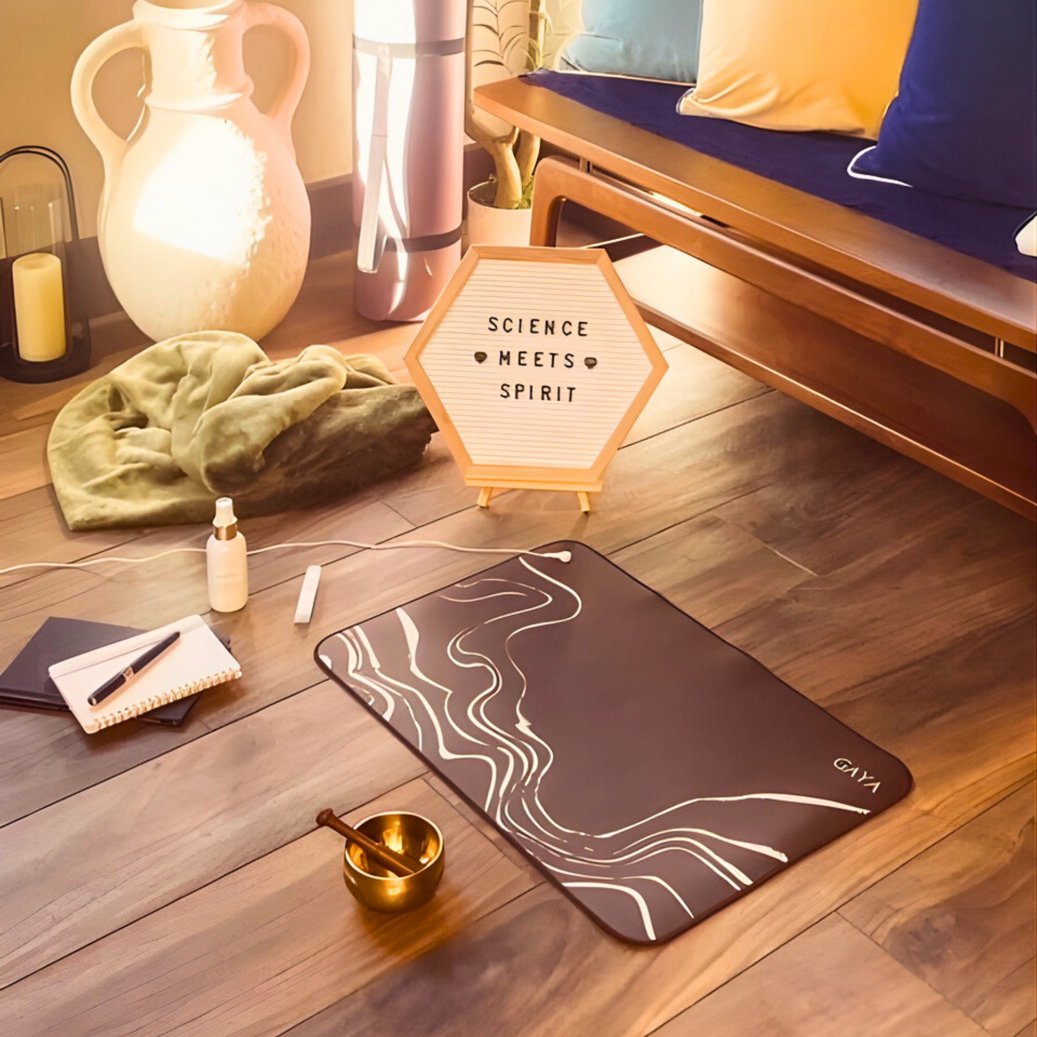 Engineered with conductive materials, this mat reconnects your body to the earth’s natural charge, promoting balance in both body and mind.