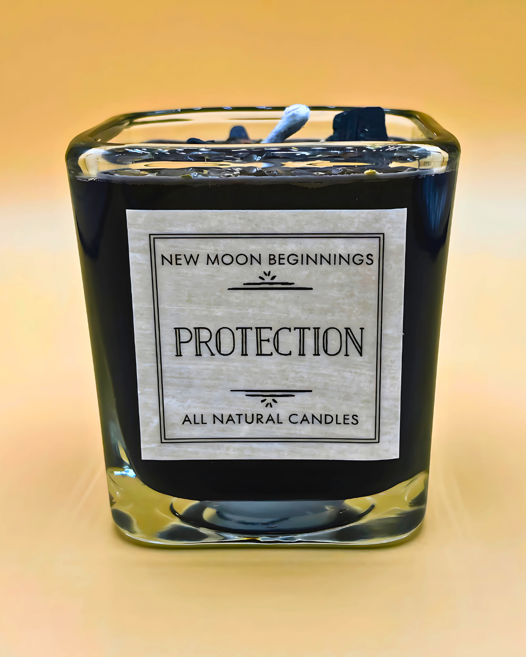 Light your Protection Candle with clear intention, and allow the combination of earth-bound crystals and sacred oils to form an energetic barrier of security, peace, and strength.